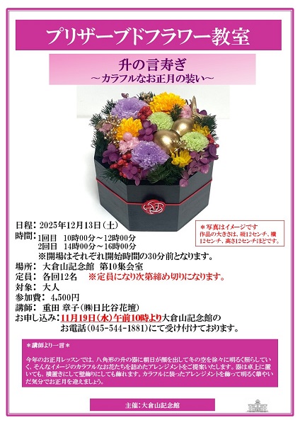 【11月19日(水)10時受付開始】12月13日(土)プリザーブドフラワー教室/升の言寿ぎ~カラフルなお正月の装い~